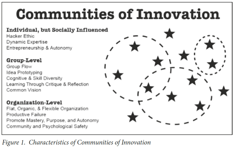 Innovation and creativity are a social activity that is either supported or diminished within formal learning contexts. This paper helps to elucidate the qualities of the community that make that so.