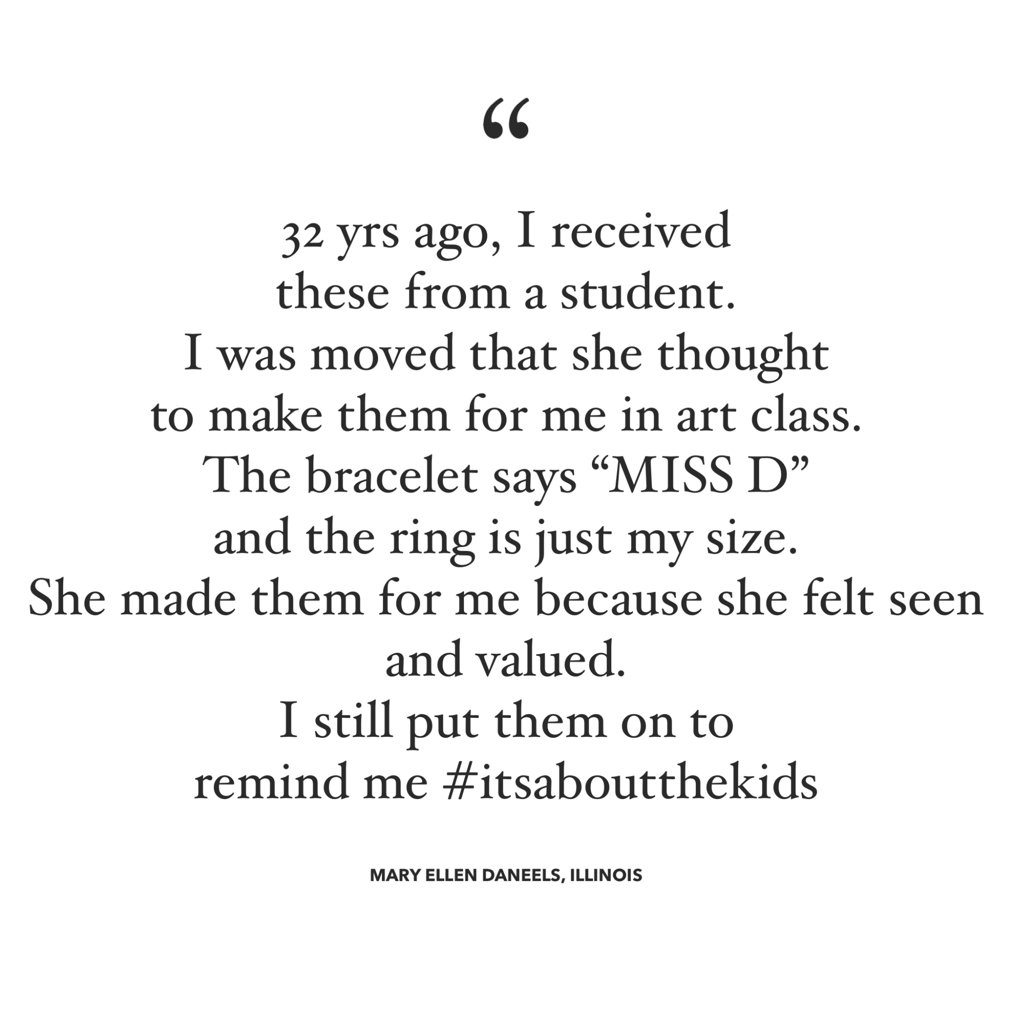For my photo essay, I wanted to gather inspiration for teaching that teachers were gifted from students. Sacred objects that they returned to in order to [re]establish their teaching purpose. These objects had a wide range and were a beautiful insight into the multifaceted way in which teachers conceive of their vocation.